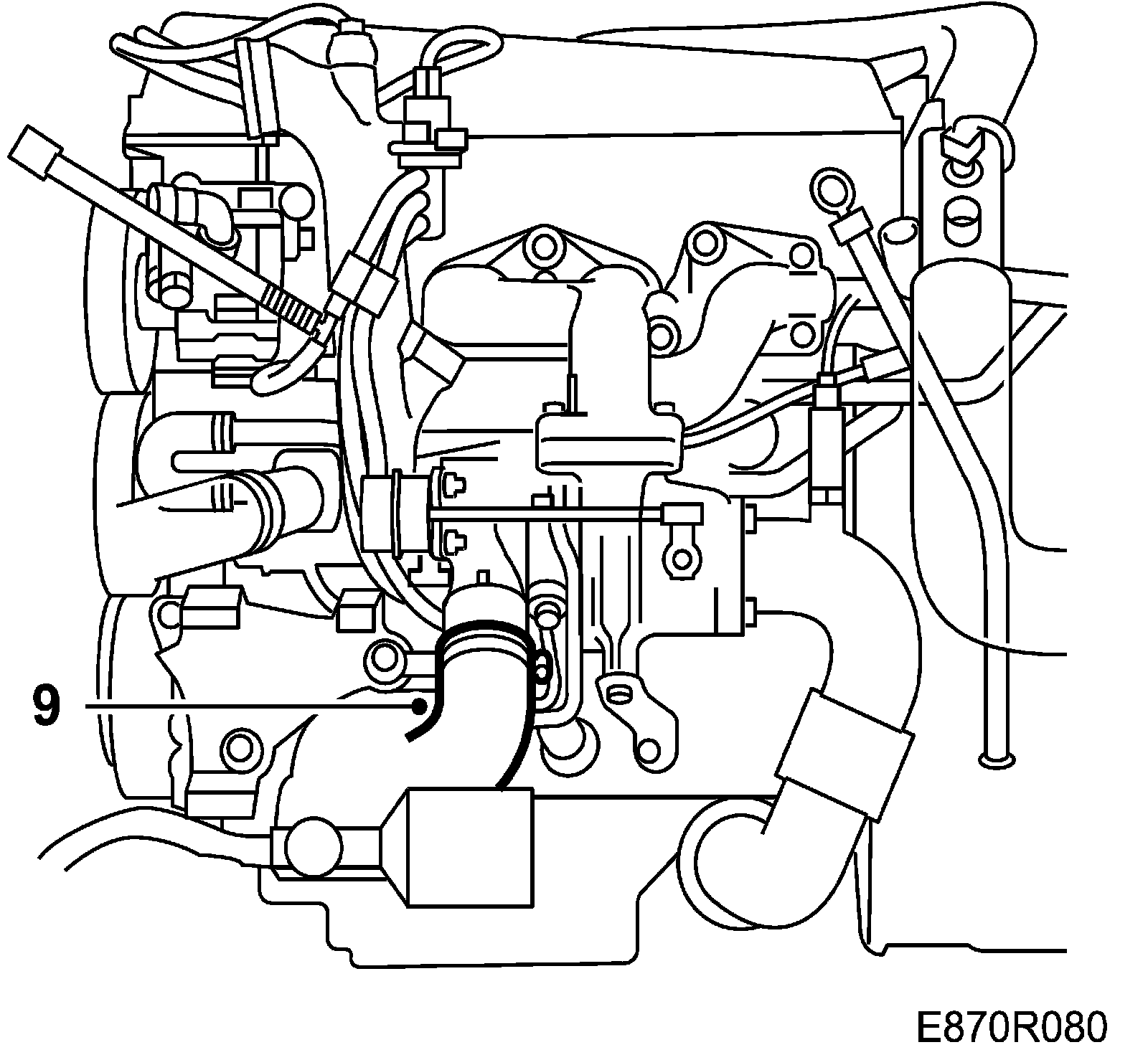 9. Disconnect and fold away the pressure hose from the turbo.