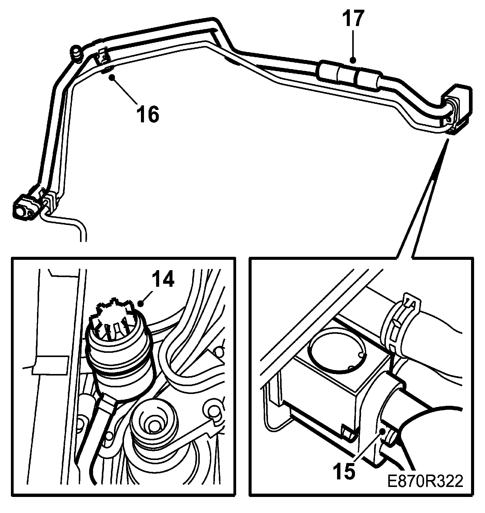 15. Detach the rear end of the low-pressure pipe from the expansion valve.