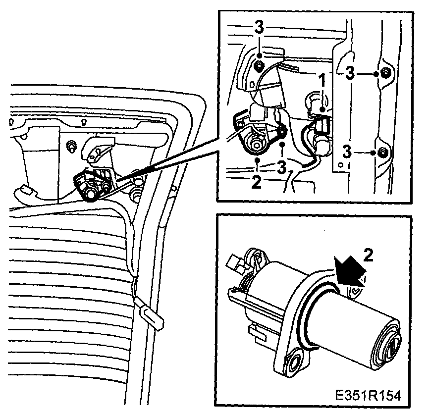 4. LH, cars without lock cylinder: Remove the clip and cable.