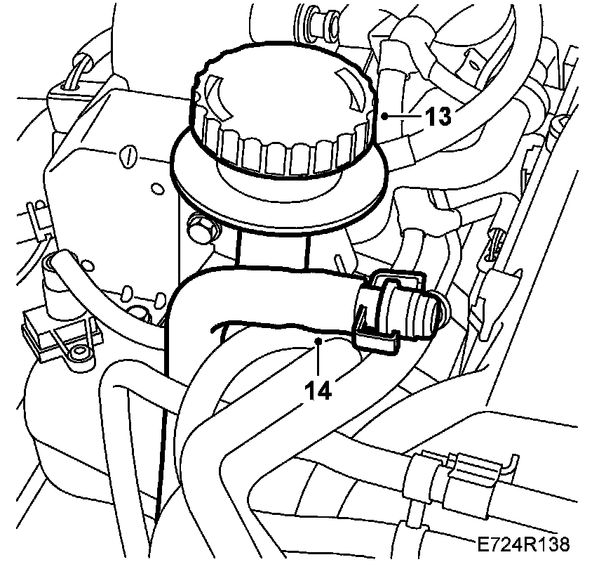 12. Remove the plug and fit the dipstick with filler pipe and the cover on the throttle body pedal arm.