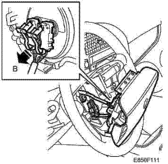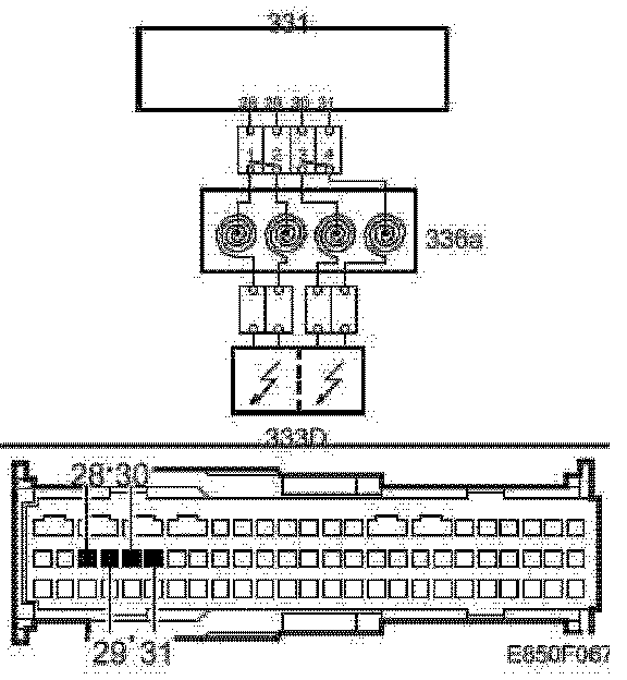 Diagnostic trouble code B0042, B0044: Make a connection between pins 3 and 4 in the female connector (A). Use 86 12 731.