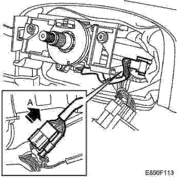 1. Diagnostic trouble code B0022, B0026: Make a connection between pins 1 and 2 in the female connector (A). Use 86 12 731.