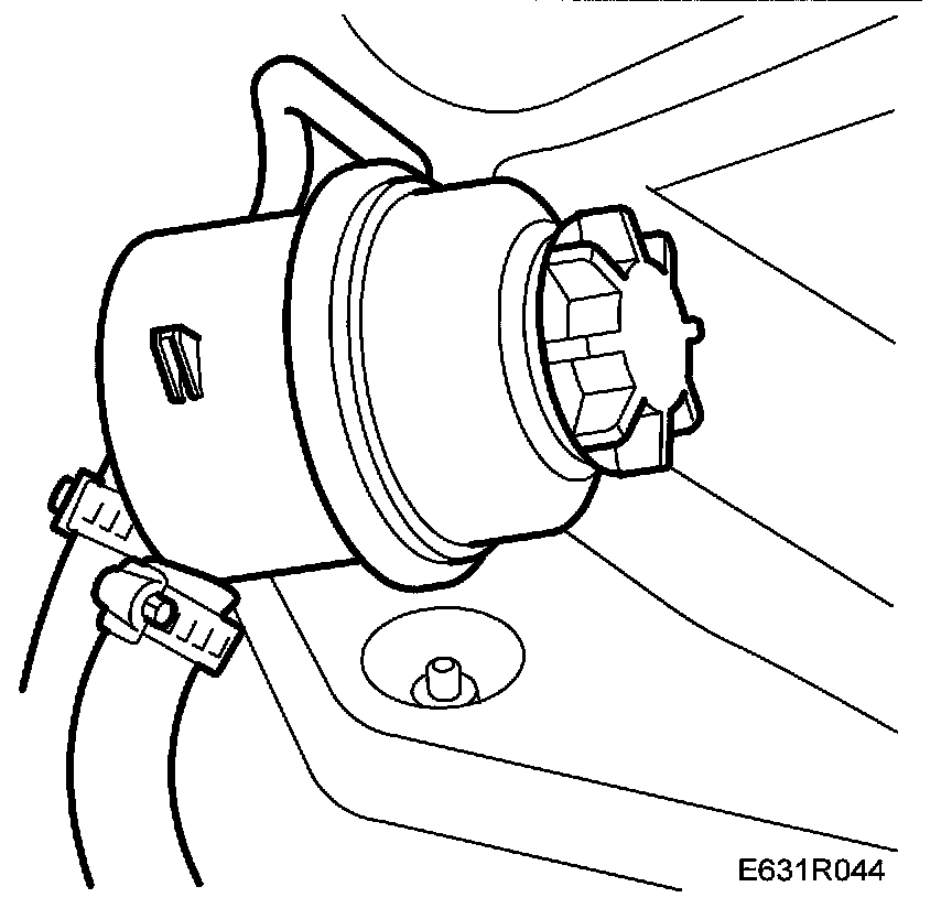 21. Connect the return hose to the power steering fluid reservoir and tighten the hose clip.