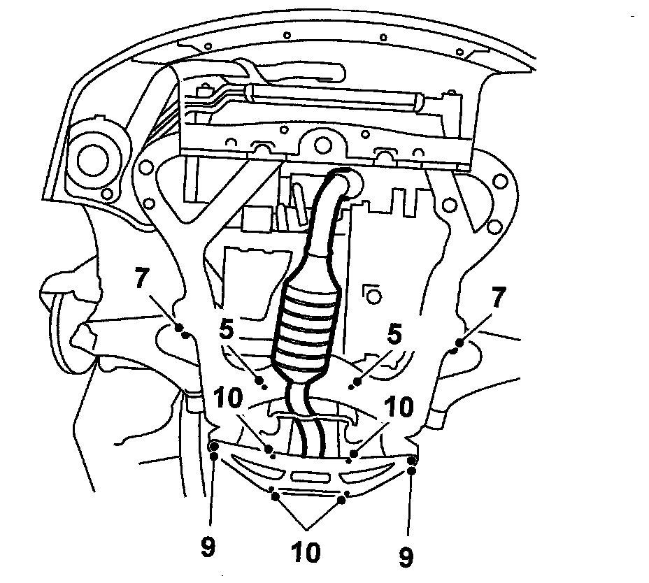 21. Remove the bolts from the subframe's center attachment point, lower the rear of the subframe and remove the engine cushion.