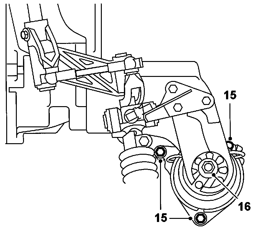 15. Tighten the bolts securing the rear engine cushion to the subframe.