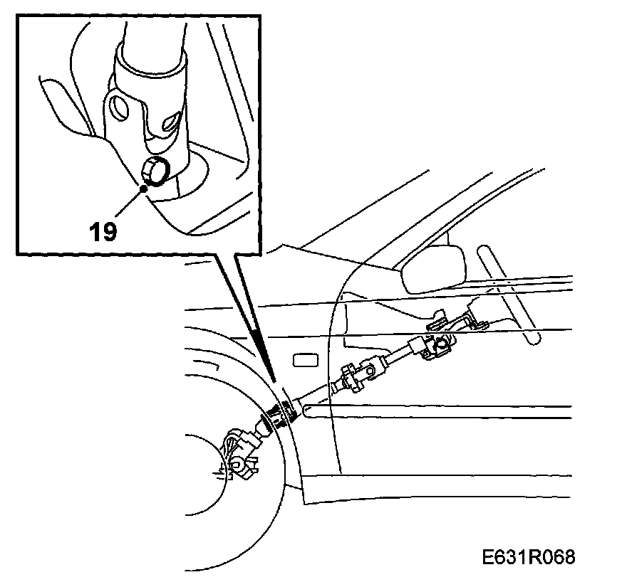9. Remove the bolt securing the steering column shaft to the steering gear (accessible under the dashboard) and push the steering column shaft upwards, withdrawing it from the steering gear.