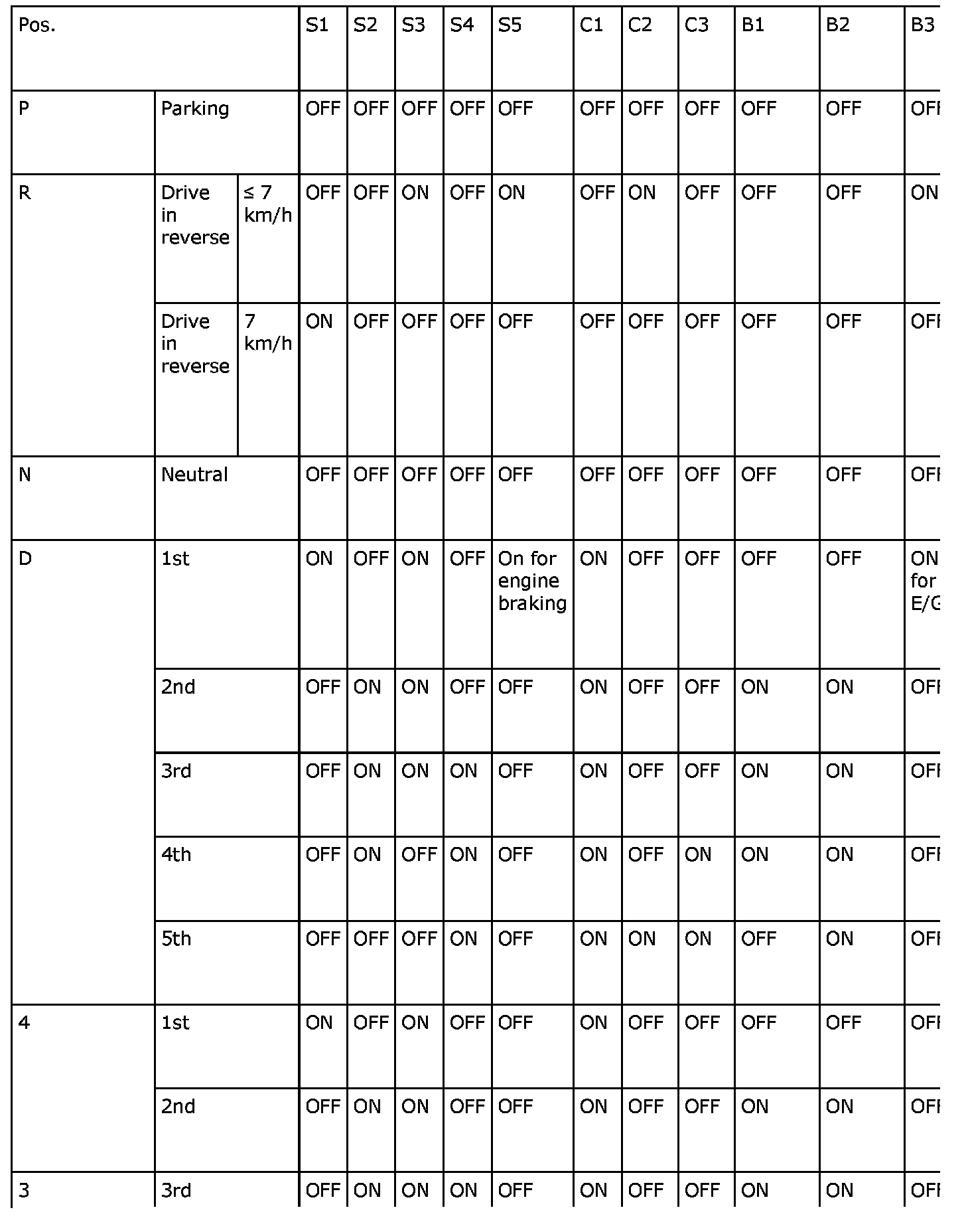 F1: Prevents the front planetary gear set's (P2) sun gear from rotating anticlockwise when B2 is applied.