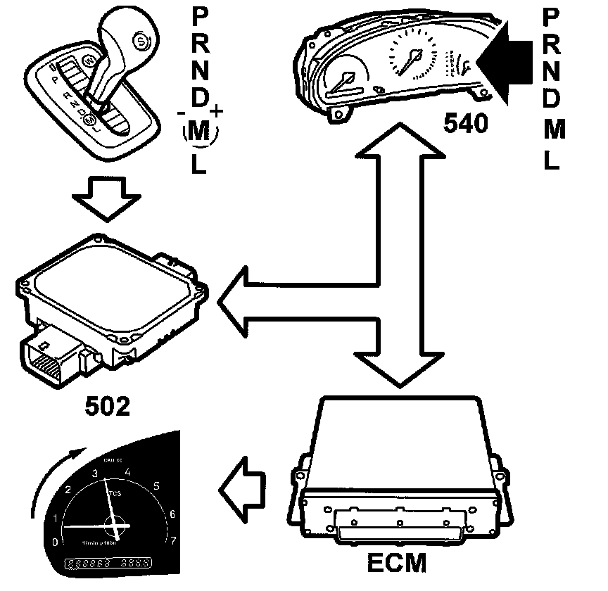 The TCM continuously transmits information on the bus indicating the selected "SELECTOR LEVER POSITION" with value P, R, N, D, M, L" or respectively P, R, N, D, 4, 3, L (D223L), the value being used by both the engine control system and the MIU.