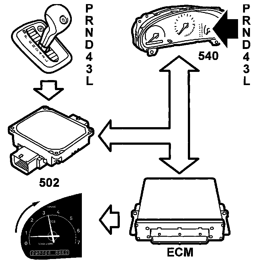The main instrument unit uses"SELECTOR LEVER POSITION" information to light up the relevant segment in the selector lever position indicator.