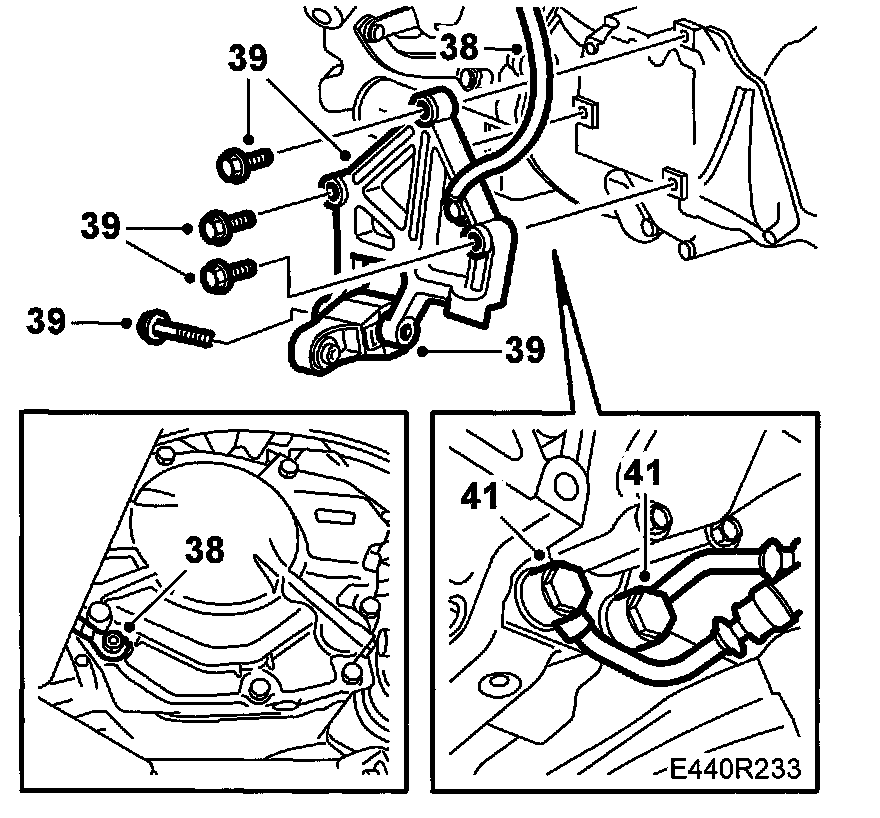 Tightening torque, bolt on bracket 70 Nm + 90° (52 ft. lbs. + 90°)