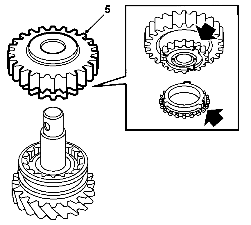 5. Fit the reverse pinion with integrated synchromesh hub.