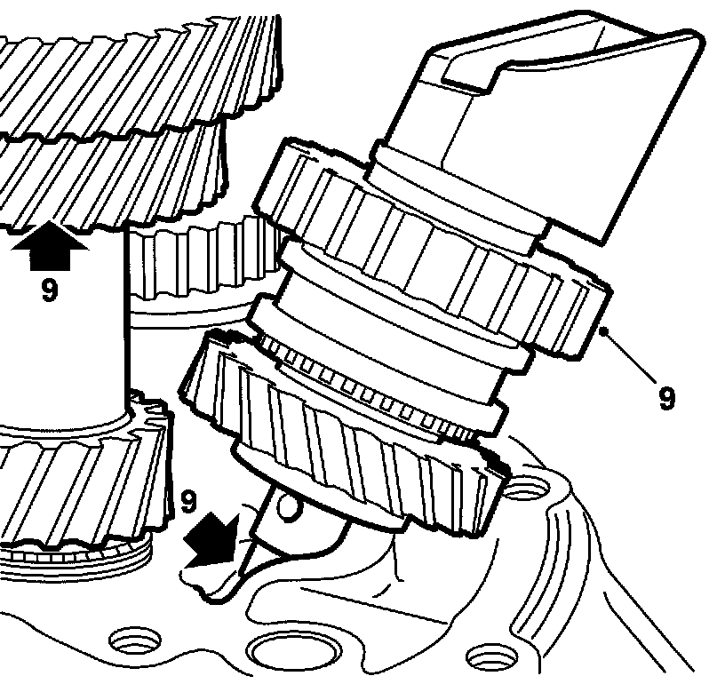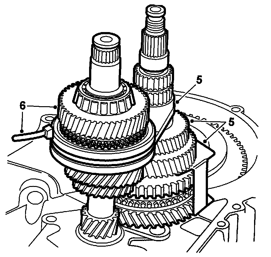 IMPORTANT: Carefully tap the primary shaft using a plastic hammer so that the bearing race at the 5th pinion is against the bearing support.