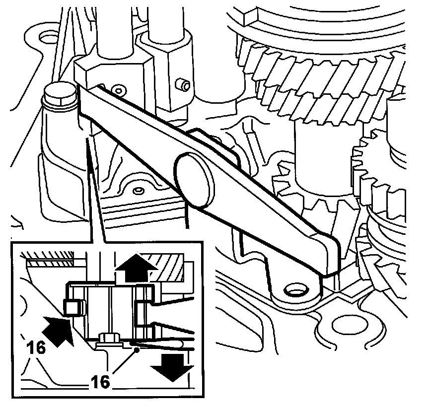 16. Check that all gears can be engaged. Also check the dual interlock feature by engaging 1st and then attempting to engage reverse by pushing in the reverse gear fork using a screwdriver. If reverse can be engaged, the locking pin in the selector mechanism must be checked.