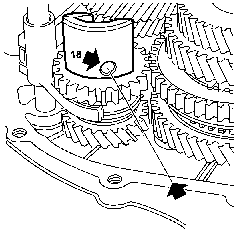IMPORTANT: If the lube hole is facing the other way, the reverse gear is incorrectly assembled. If this is the case, correct the fault.