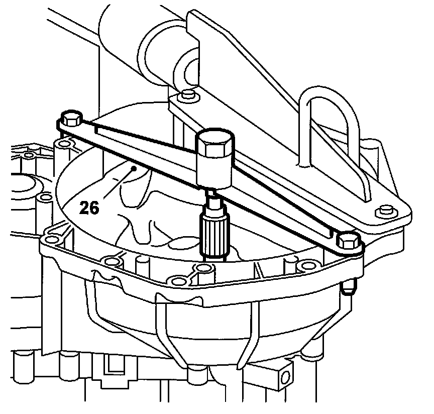 Differential, bearing support fitted but not tightened (axial play 0.10 - 0.20 mm)