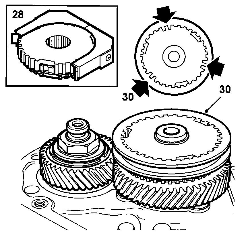 30. Fit the 5th synchromesh sleeve with the tip angles down.
