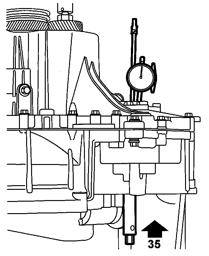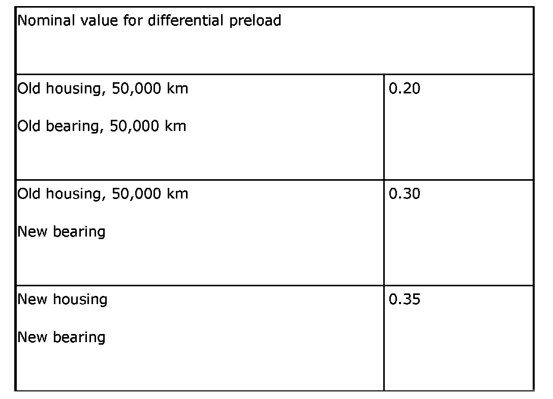 35. Lift the differential using 87 91 337 Driver, measuring differential bearing torque and read the value on the dial gauge. The correct shim thickness is: measured value plus the value from the table.
