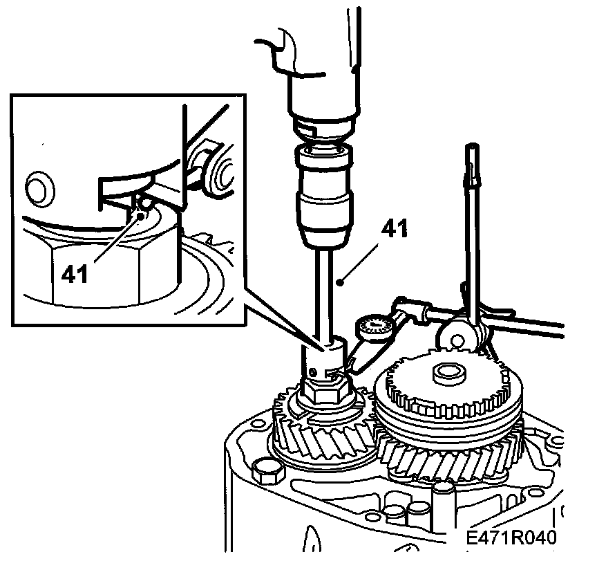 48. Place the torque wrench at the 5th gear nut output shaft. No gear must be engaged. Rotate the torque wrench several turns clockwise at an even speed. Read the average value from the display during rotation.