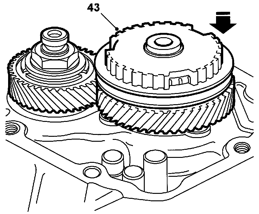 42. Engage 5th gear by pushing down the synchromesh sleeve. Engage 1st gear.
