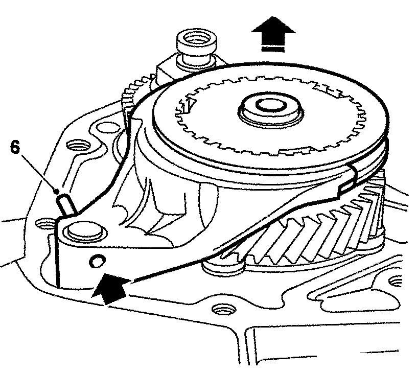 ^ Pull the selector mechanism back towards the differential and angle it out slightly. Lift out the selector mechanism.