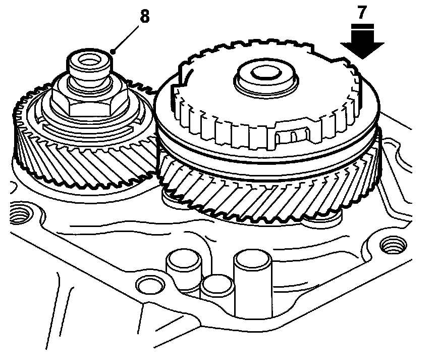 7. Press down the synchromesh sleeve so that 5th gear is engaged. Two gears must be engaged simultaneously when the nut on the output shaft is unscrewed.