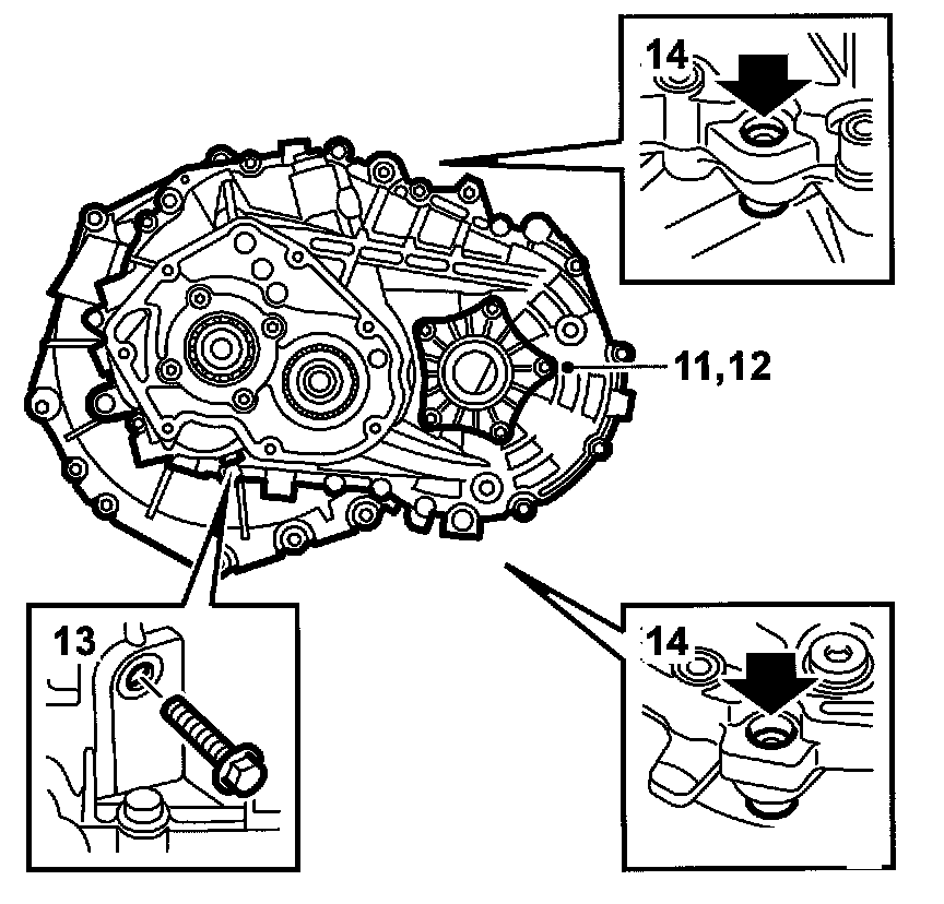 IMPORTANT: The holes for the drive shafts and the feed line to the slave cylinder should be covered before the gearbox is to be cleaned, use plugs for the drive shaft holes 587 92 665.
