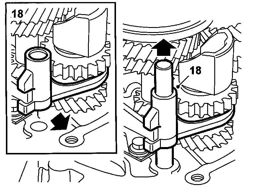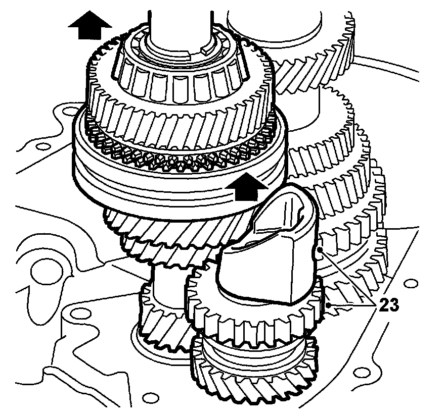 IMPORTANT: Before removing the synchromesh sleeve, mark its position relative to the 5th gear synchromesh with a pen to facilitate refitting. Remove the fork and synchromesh sleeve and then refit the synchromesh sleeve.