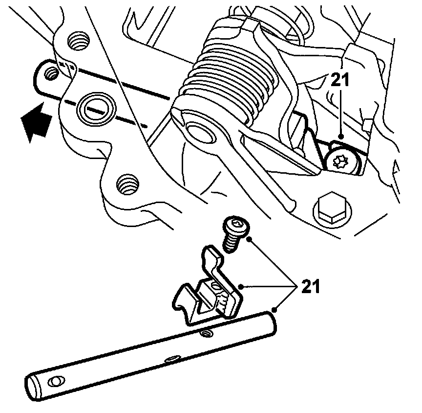 21. Remove the bolt for the driver on the selector rod. Withdraw the shaft and keep the driver.