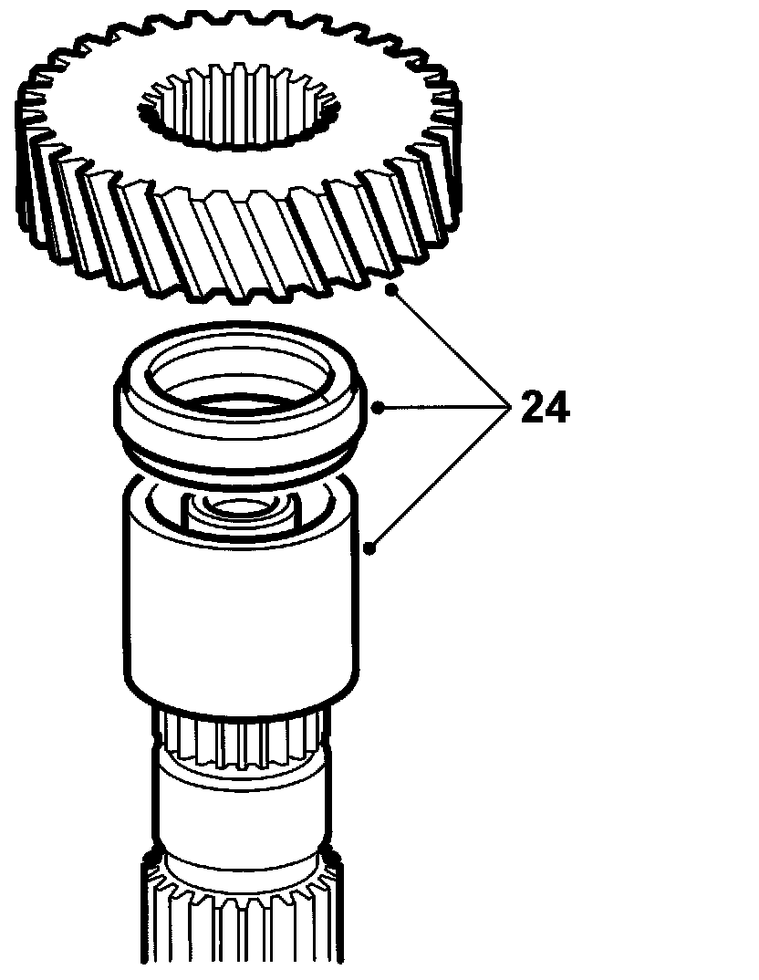 NOTE: that the synchromesh sleeve may only be placed on the synchromesh hub when the high lugs on the sleeve are opposite the tooth gaps on the synchromesh hub that are opposite the deep tooth gaps.