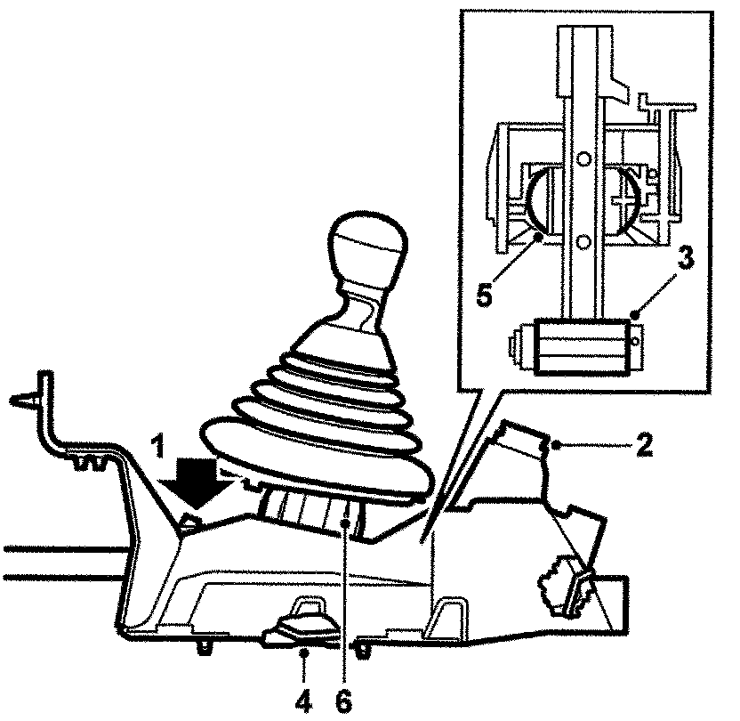 The gear lever ball (5) is mounted in a self-adjusting ball socket (6) to avoid play.