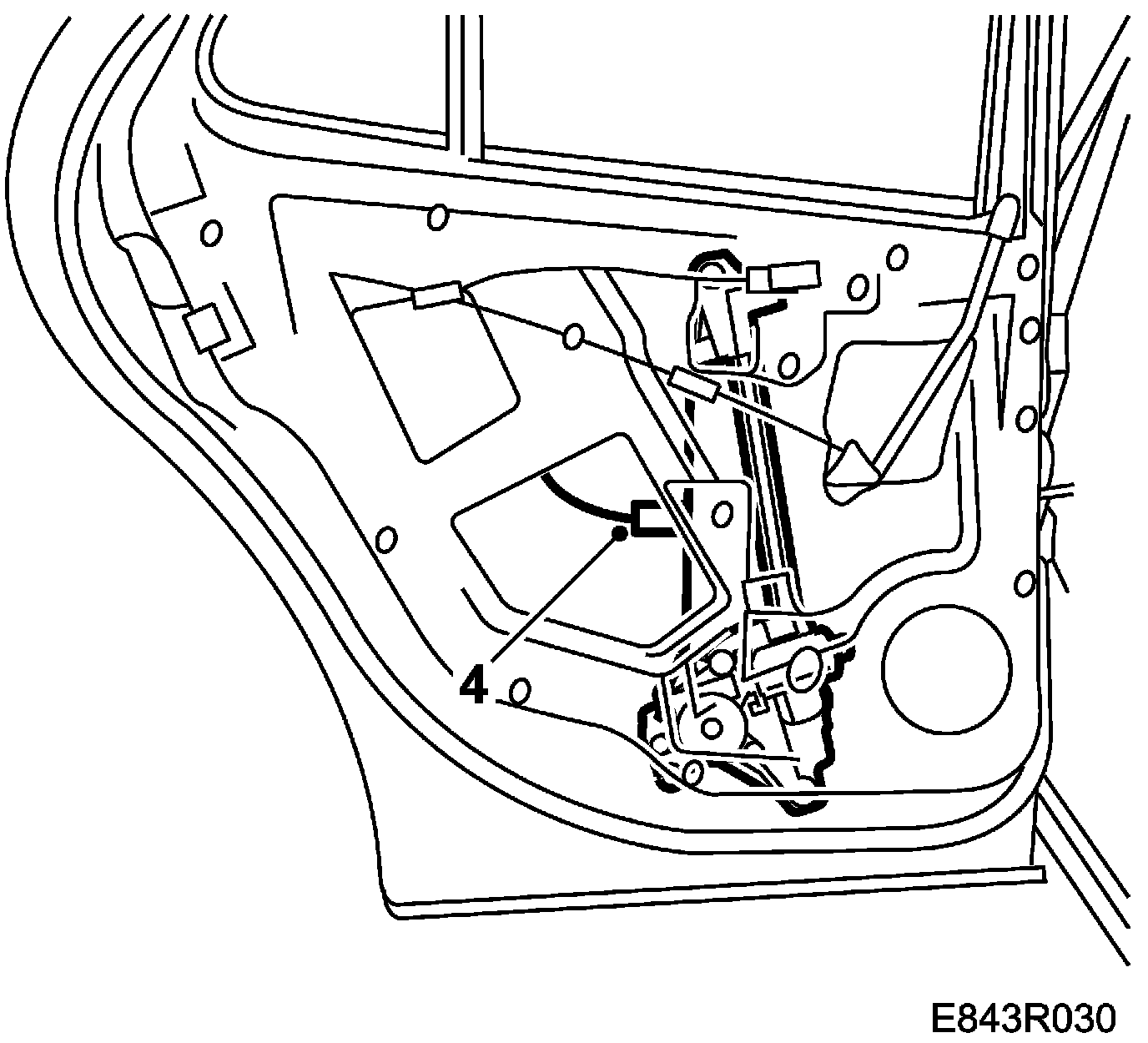 4. Lower the window so that the window mounting is visible through the hole in the door. The clip securing the ball in the window lift to the window guide rail is now accessible.