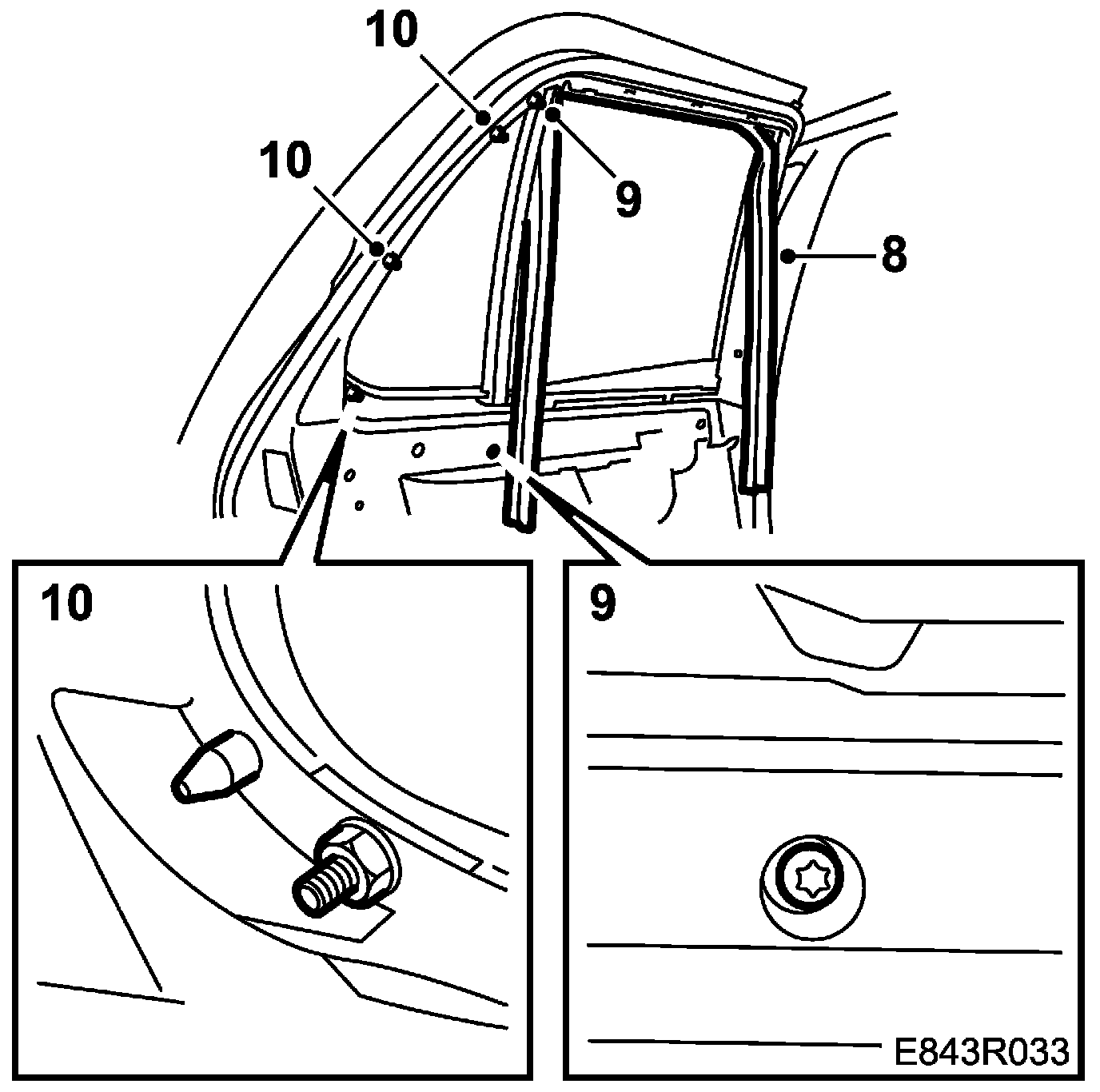 11. Press out the fixed window from the screw holes and pull it upwards. Be careful not to damage the paintwork.