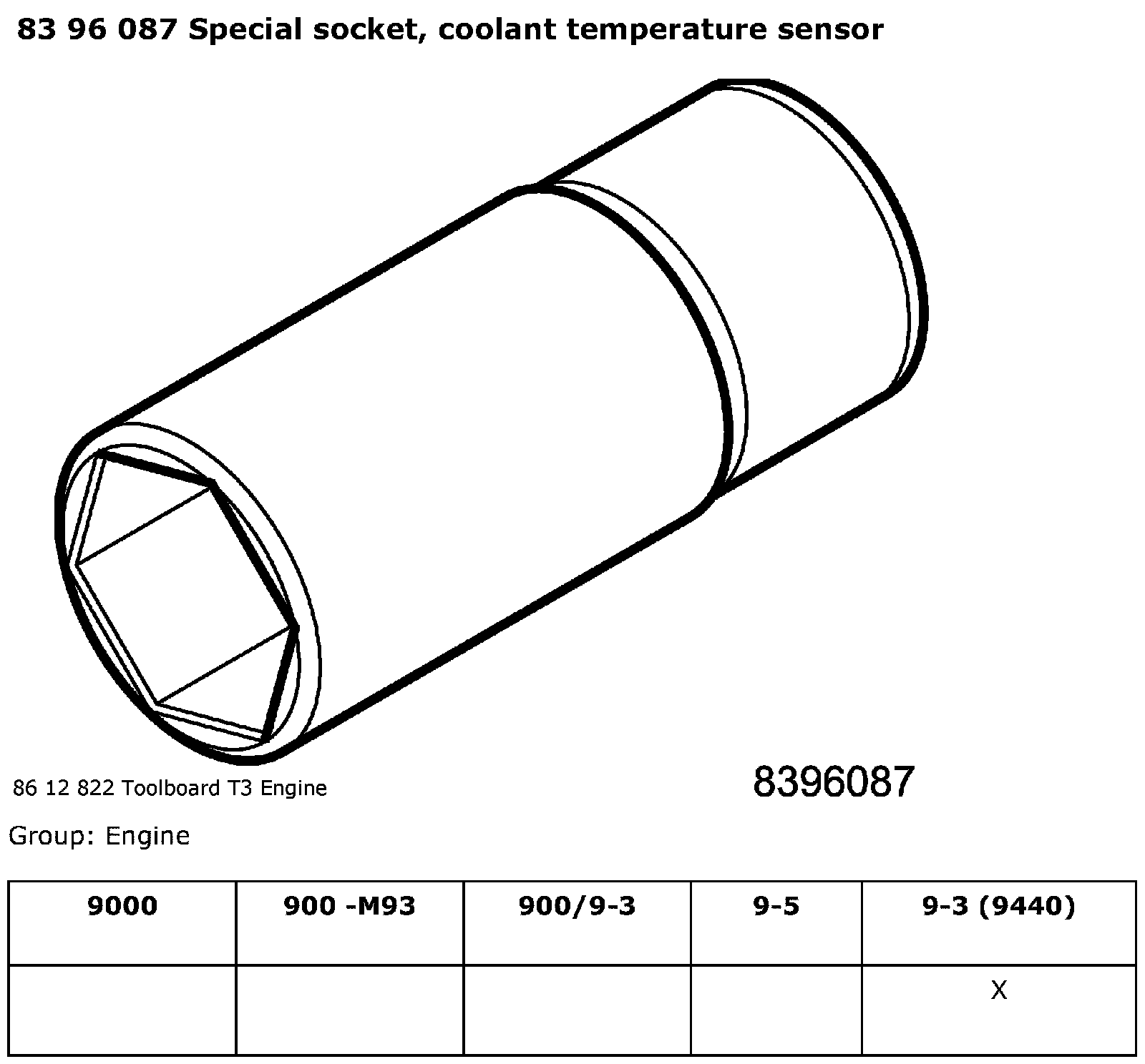 83 96 087 Special Socket, Coolant Temperature Sensor: