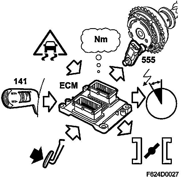 When the system's total requested air mass/combustion (engine torque) has bee calculated it is realized by the throttle and, if necessary (high engine load) turbo control. CVCP control works in parallel with the throttle and turbo control.