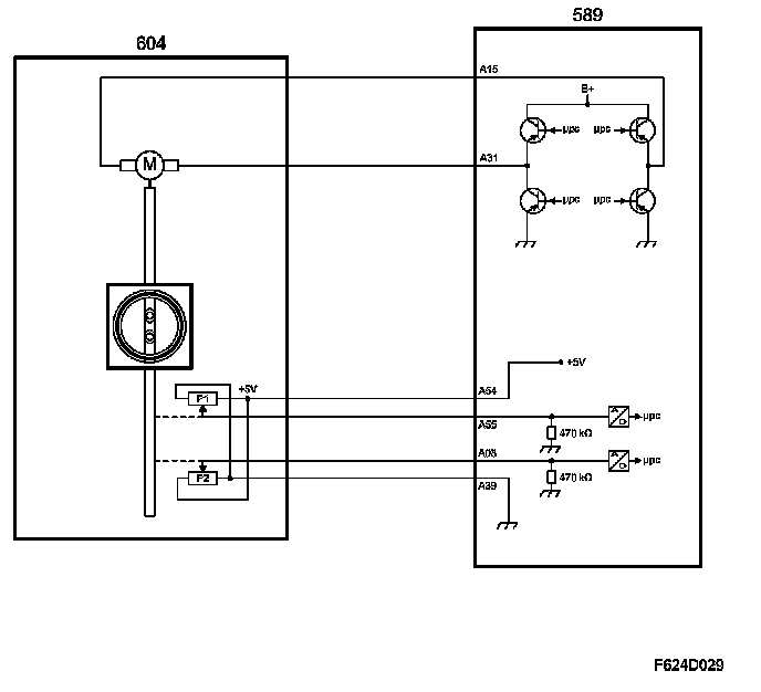 This value is converted to a certain requested value for throttle position sensor 1. The requested value is compared to the current value of the sensor. The difference (deviation) gives rise to a throttle motor PWM of a magnitude and polarity that will turn the throttle until the desired value (area) is obtained.