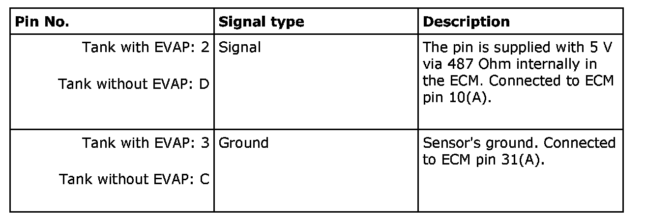 Level sensor with variable resistance, whose value corresponds to the level at which the sensor float lies in the tank. Feed via pull-up in ECM.