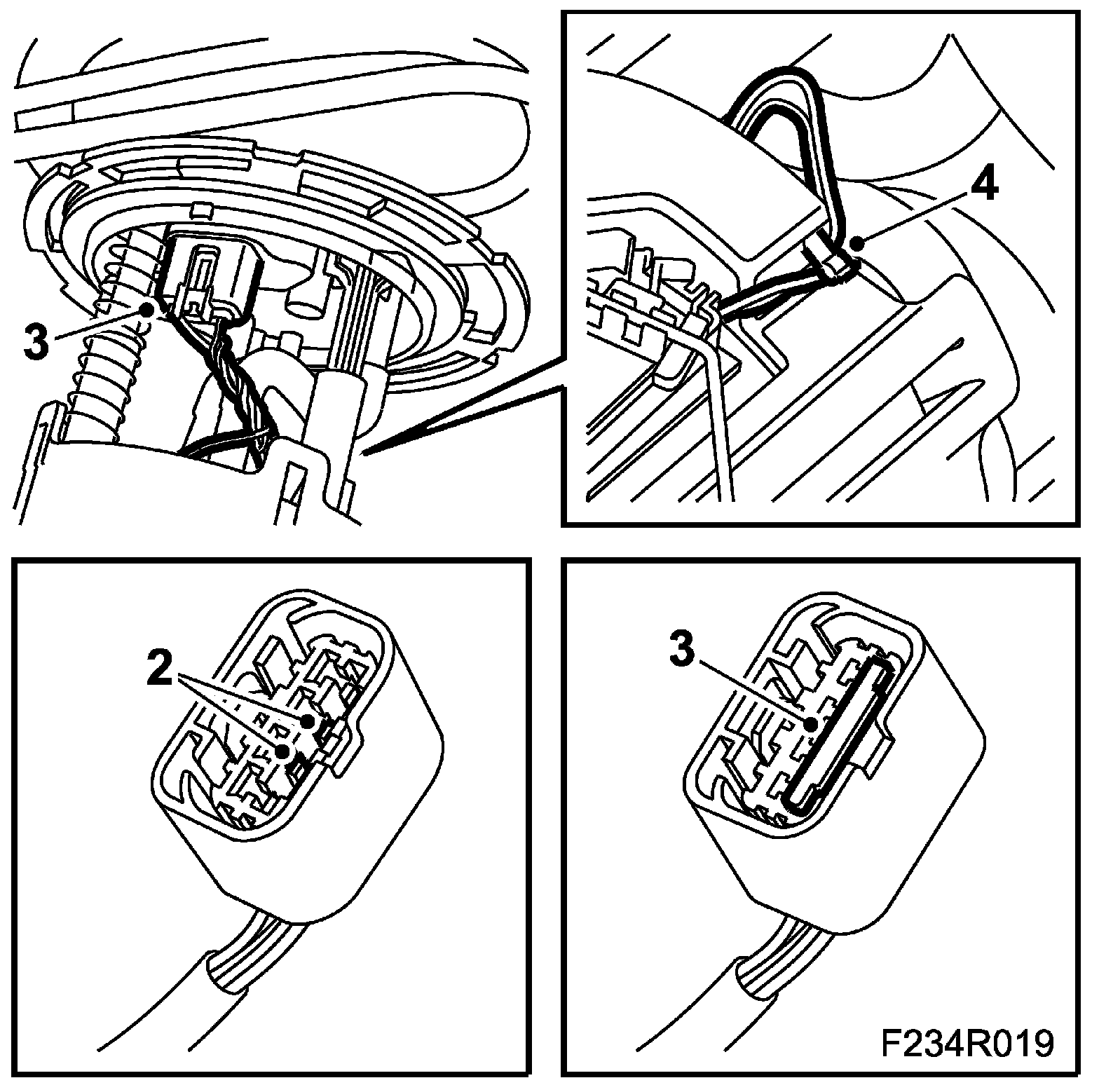 2. Connect the fuel level sensor cables to the connector. Pin no. 2 (grey cable) and pin no. 3 (white cable).