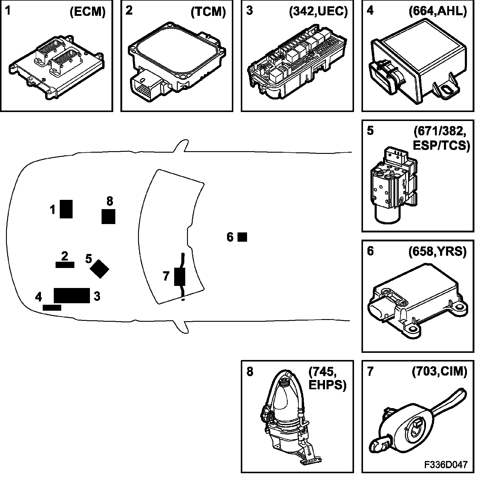 5. The ESP/TCS control module (671/382) is integrated in the hydraulic unit behind fuse board 342 (UEC).