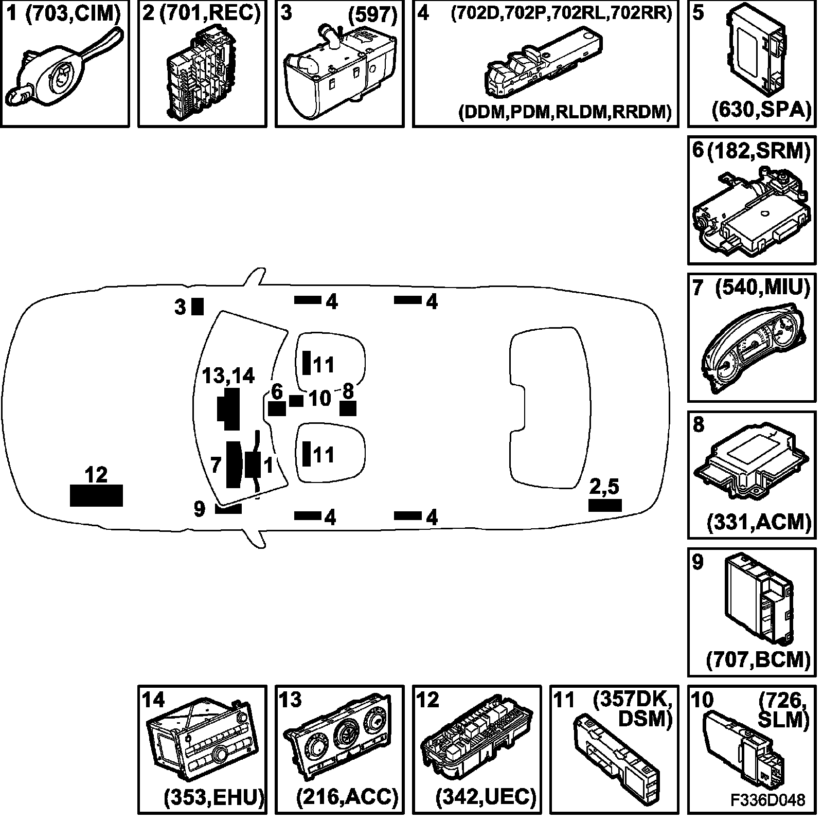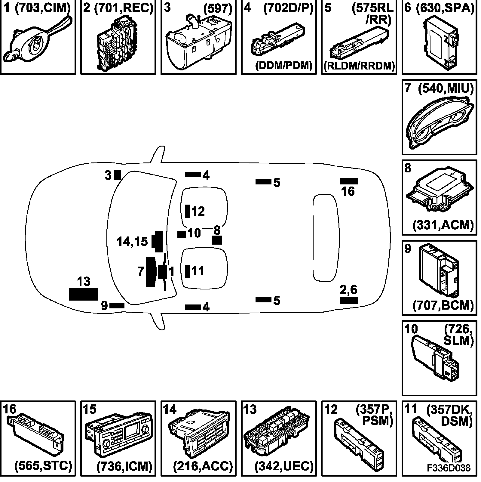 9. Control module BCM (707) is located in the instrument panel electrical center.