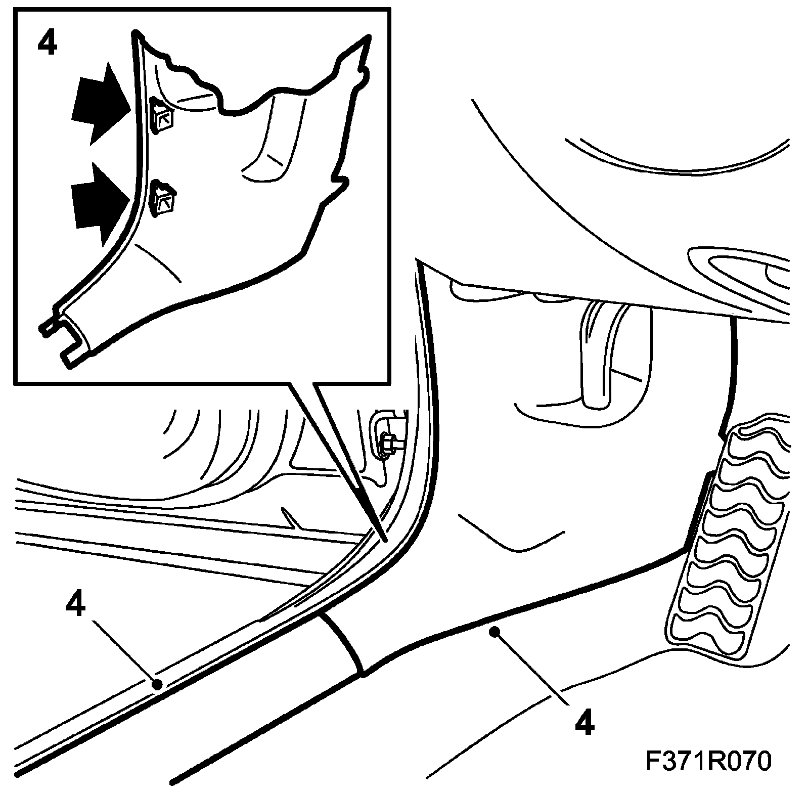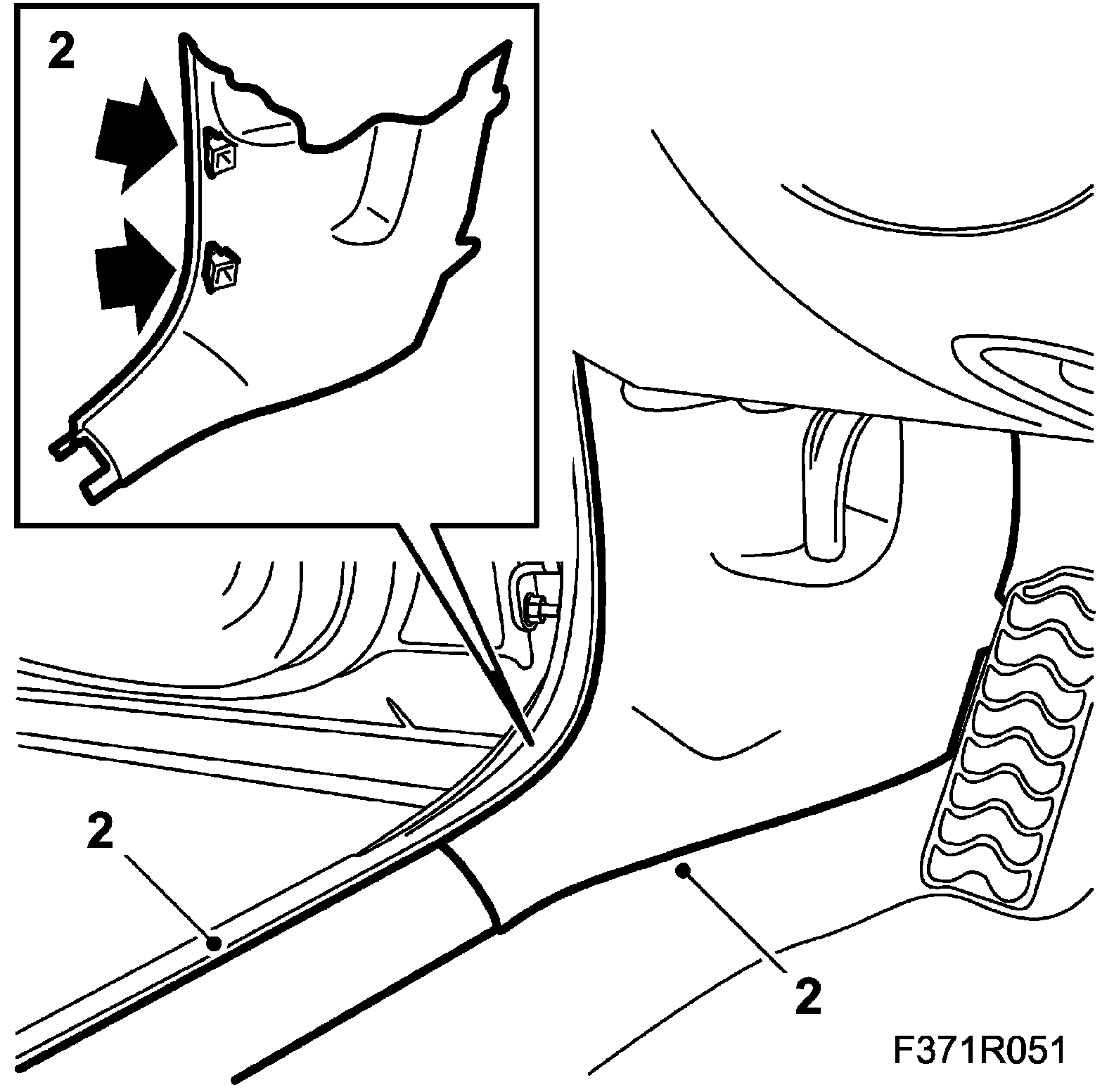 2. Remove the front scuff plates and the lower side panels of the A-pillars.