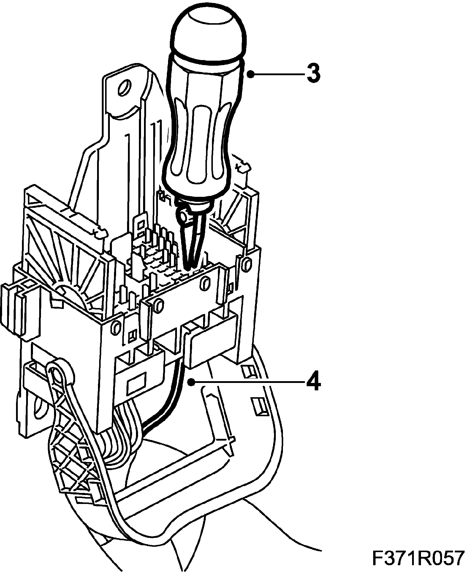 9. Fit the pin on the lead using olive green pliers (0.35-0.75 sq.mm) from 86 12 939 Tool box, wiring harness.