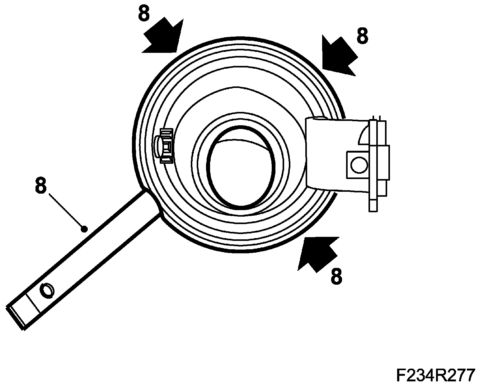 8. Remove the filler cap sleeve using 82 93 474 Removal tool. Start removing from the rear edge of the filler cap sleeve so that the locking clips disengage.