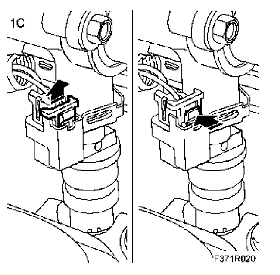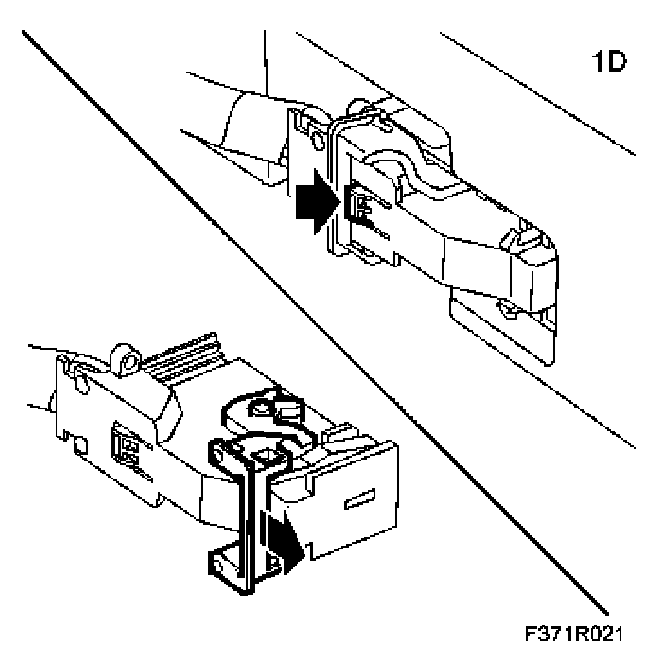 1.F. Press in the connector lock tab to release the brace. Release the connector slide while pushing the brace forward.
