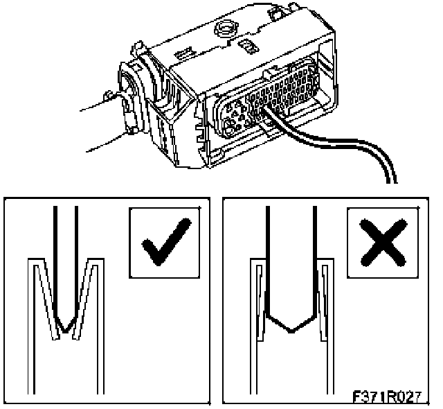 3. To check the connector clamping force, use a test cable with the right pin size (from kit 86 12 731).
