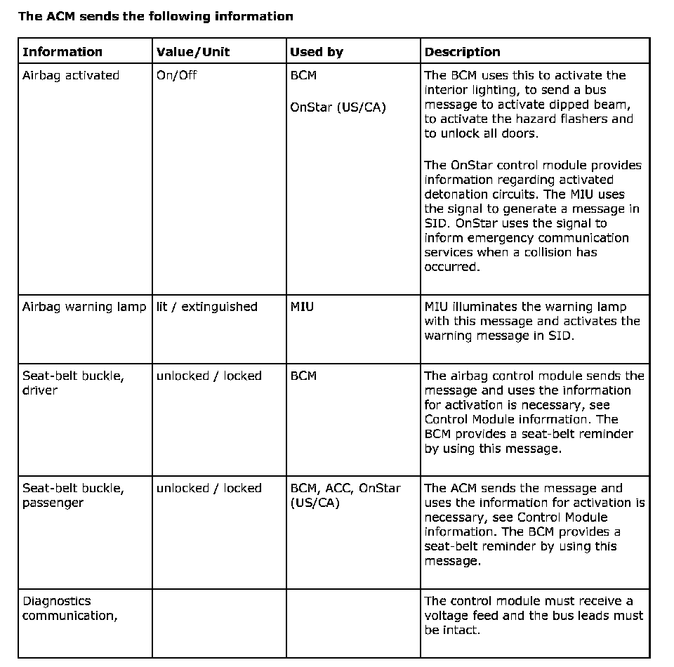 Bus Messages, Airbag Control Module (ACM)
