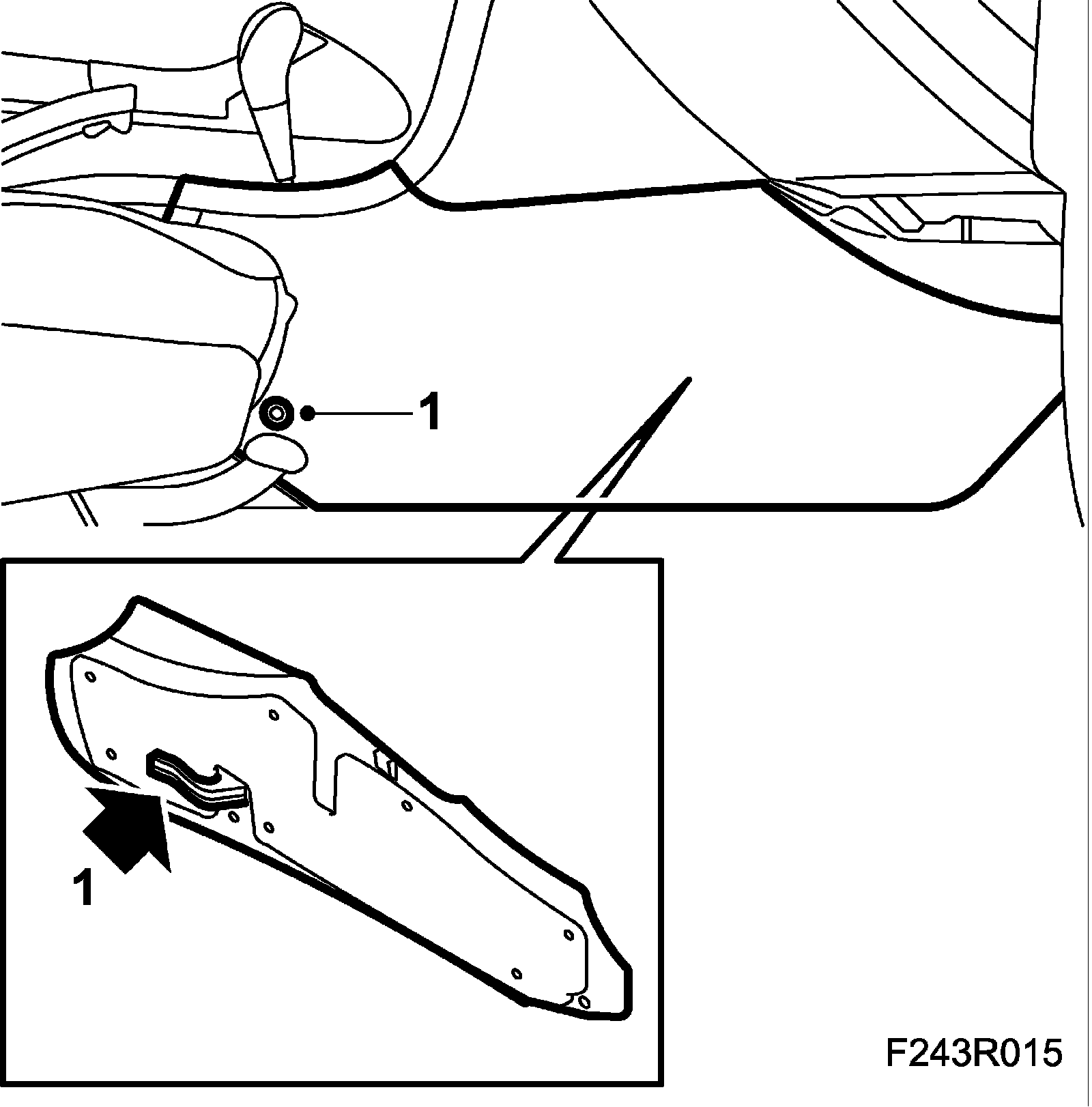 1. Remove the right side cover on the center console (1 screw).