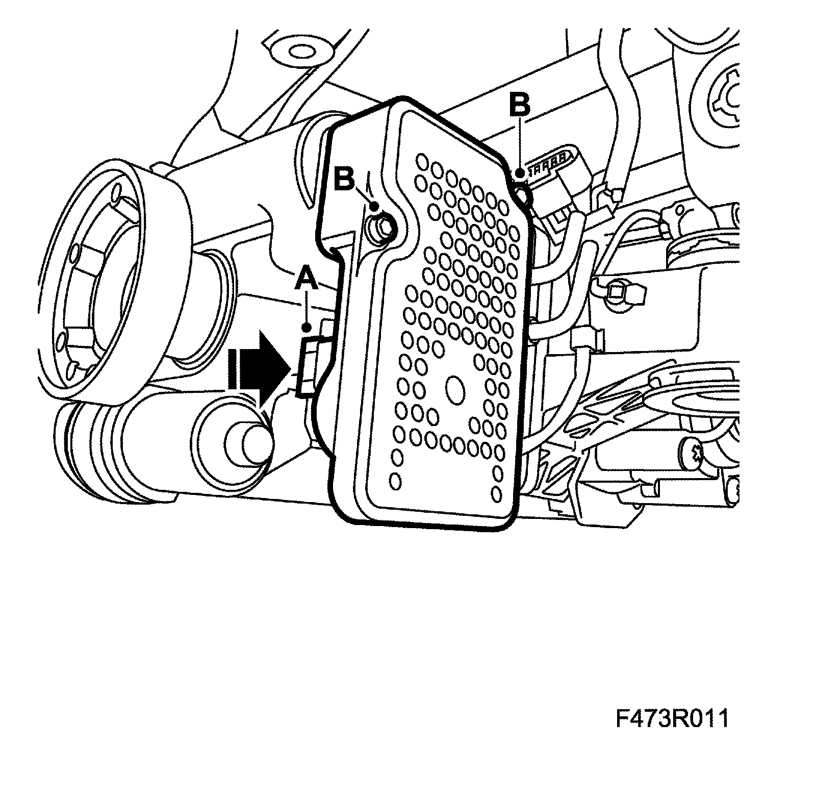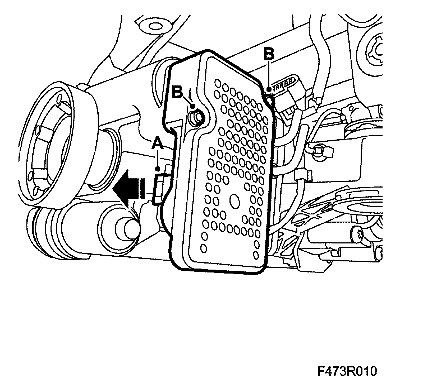 12. Remove the control module and the valve (B).