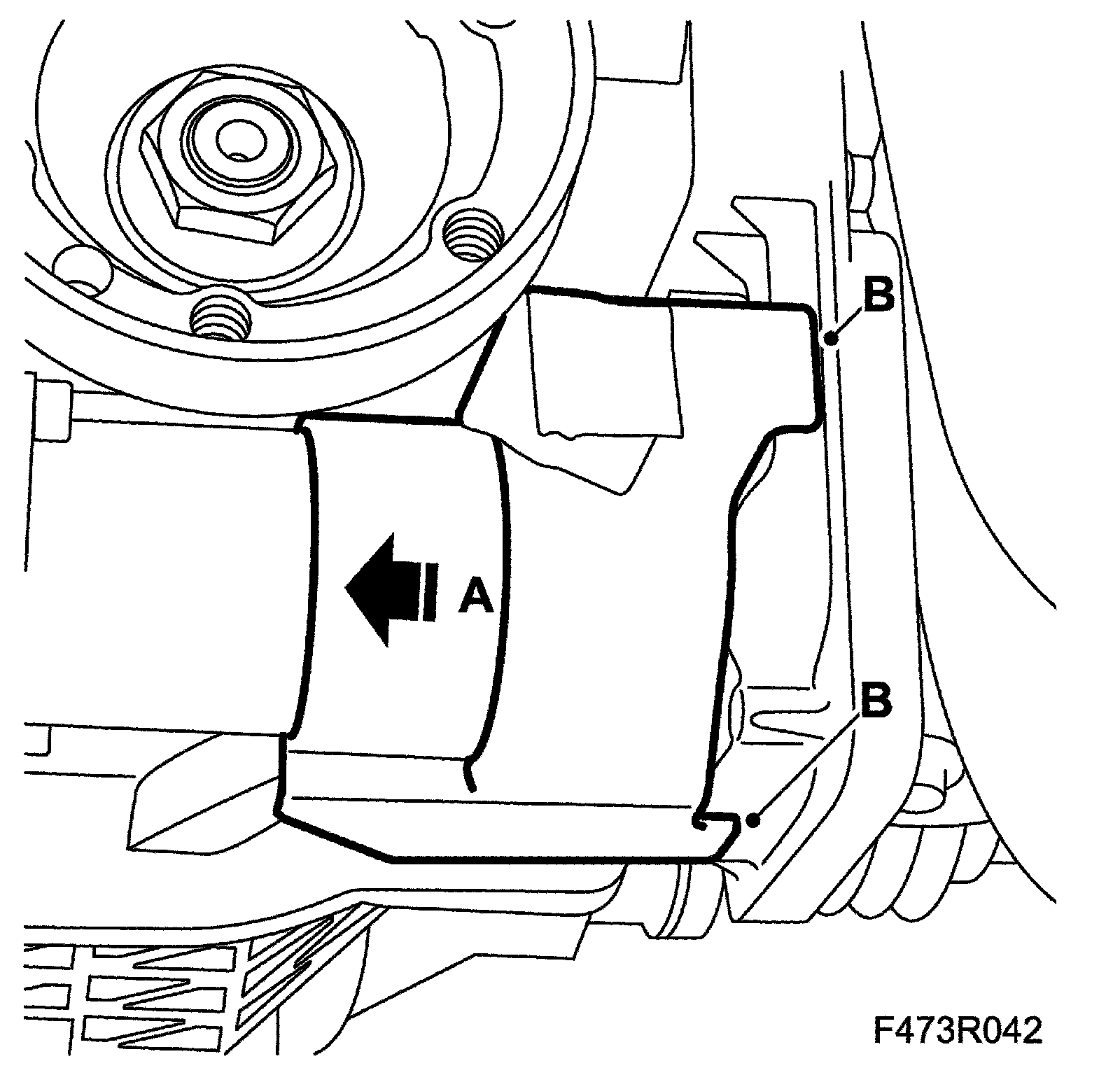 8. Use a column jack as support for the differential clutch, secure with strap (A).