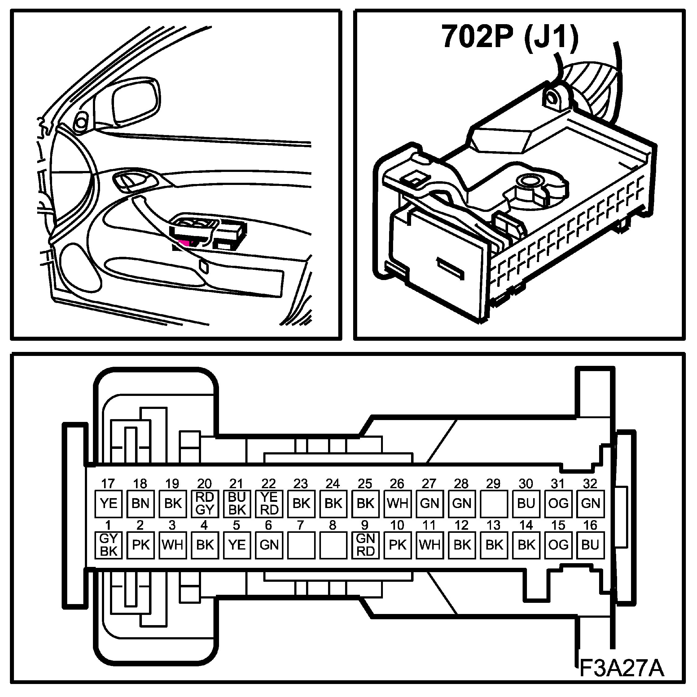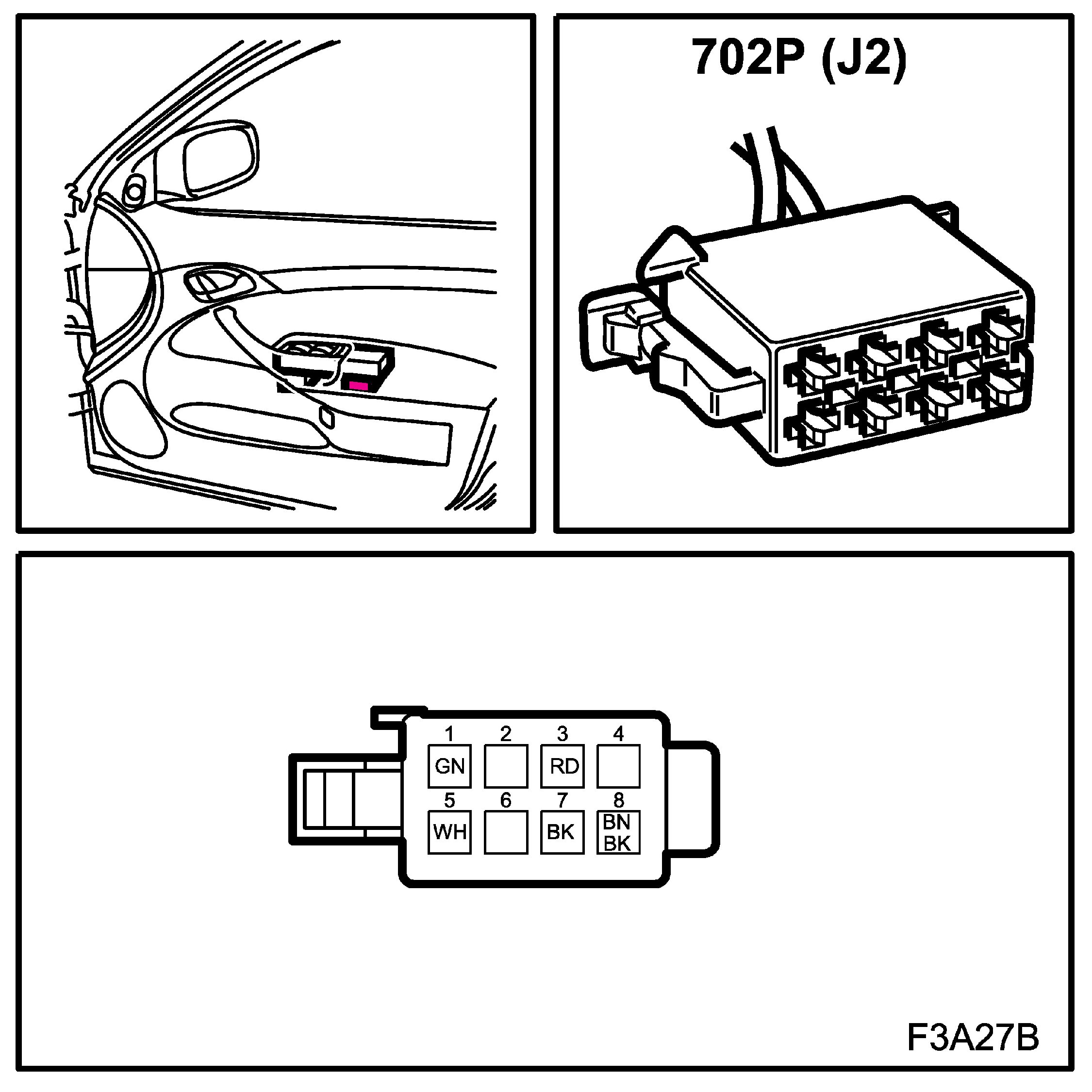 ^ Test readings % (+) and ms (+) indicate the signal pulse ratio and pulse width respectively. A scan tool with pulse ratio and pulse width measurement must be used. The sign indicates positive trigger pulse, TRIG+.
