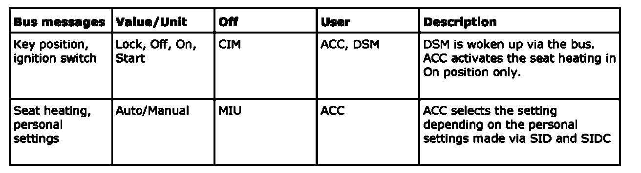 Bus Messages, Seats (DSM)